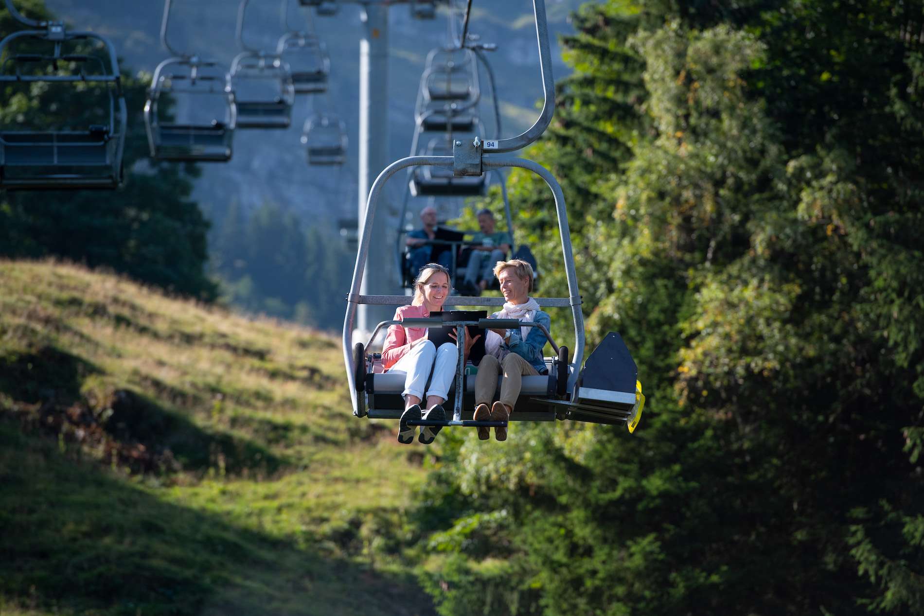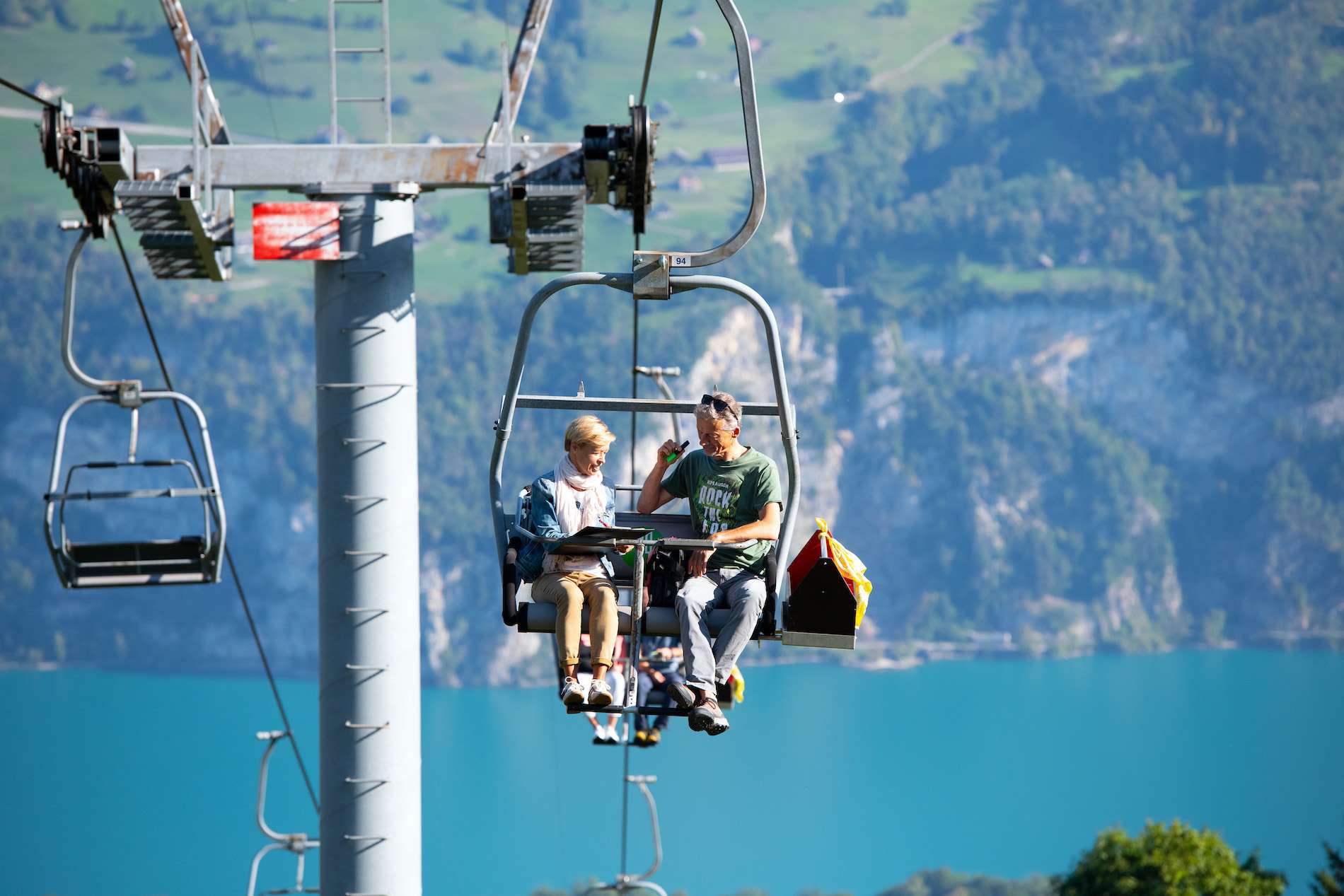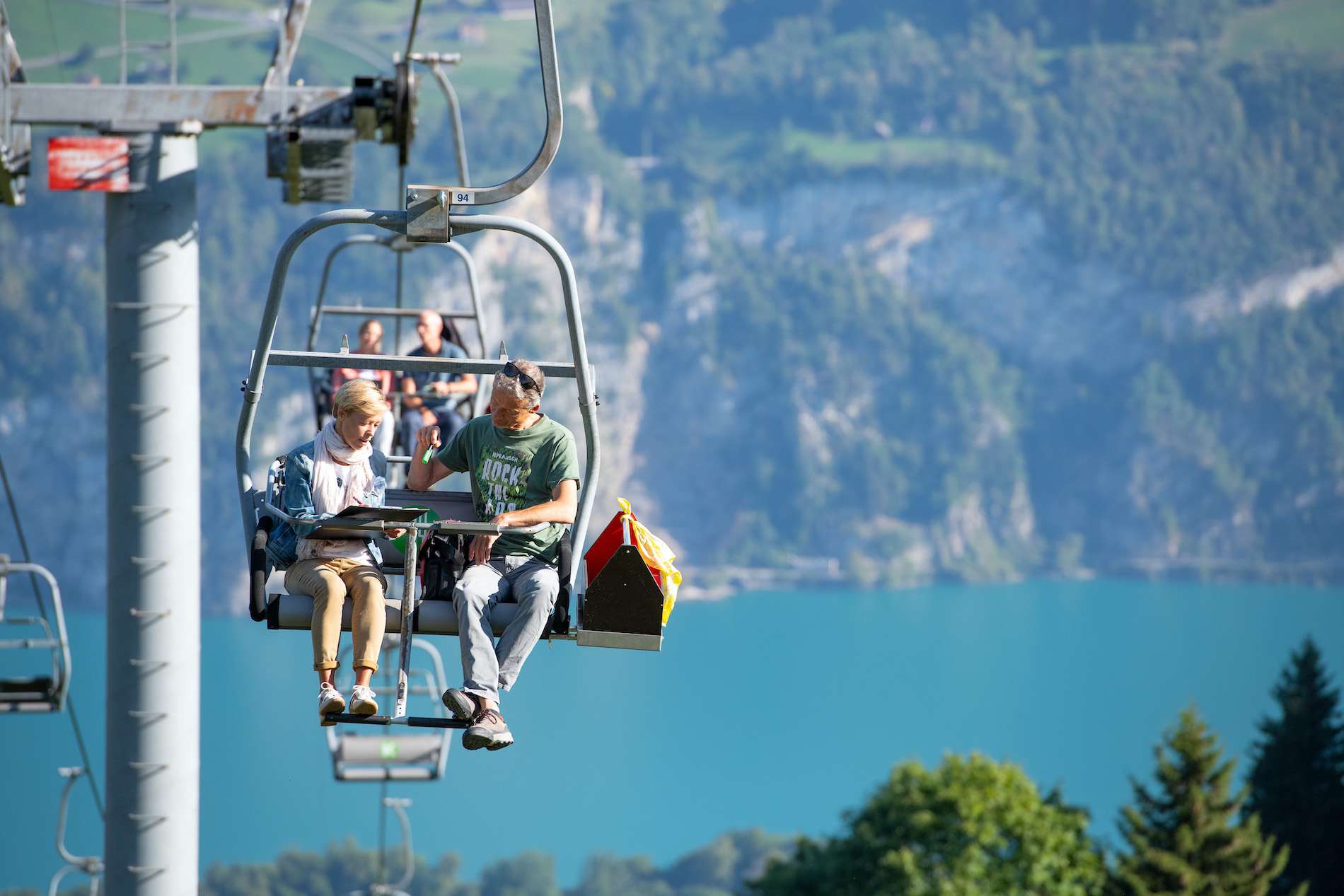 Bei Fahrten ausserhalb der Öffnungszeiten wird die langsamste Sesselbahn der Welt ihrem Namen gerecht: Du kannst die Dauer und das Tempo der Fahrt selbst bestimmen!