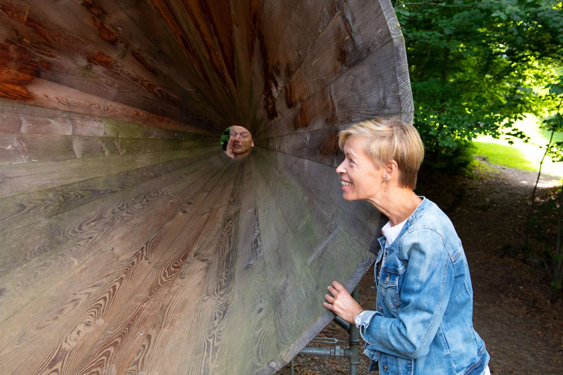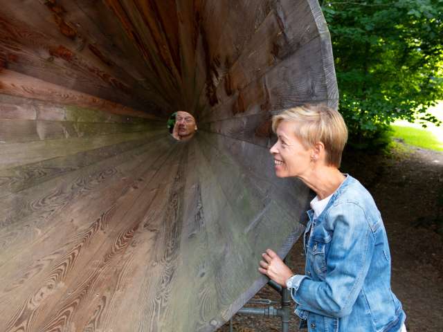 An dieser Station findest du einen der grössten Betruftrichter der Schweiz, hergestellt bei uns im Glarnerland. Mit der kleinen Ausführung rufen die Älpler ihren Segen ins Tal. Hier lernst du etwas über "Freiraum" aus der Achtsamkeitslehre.