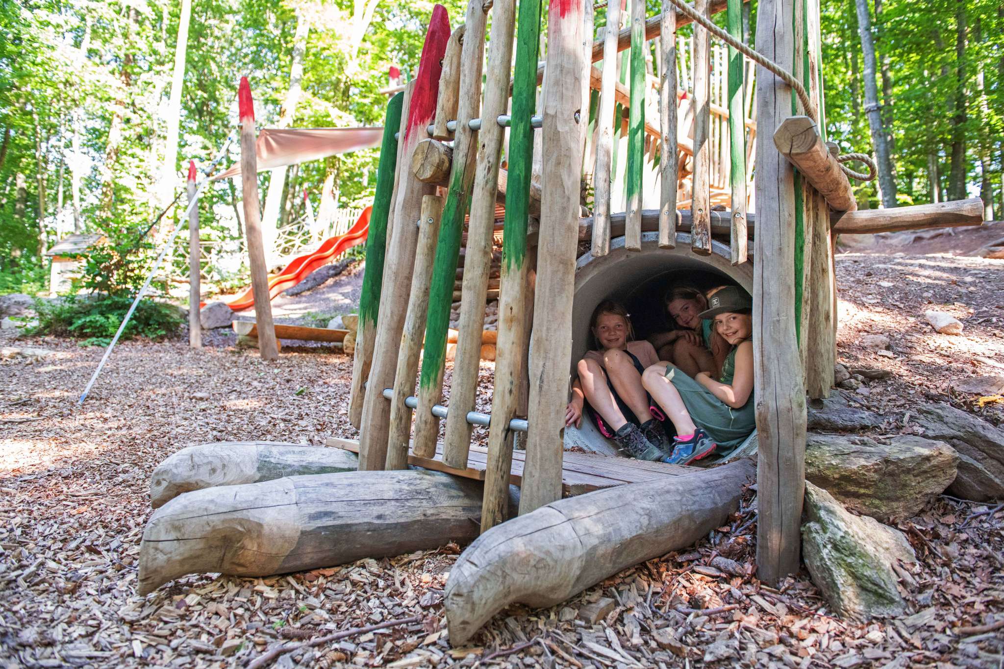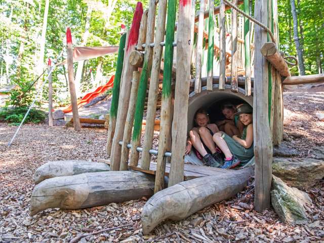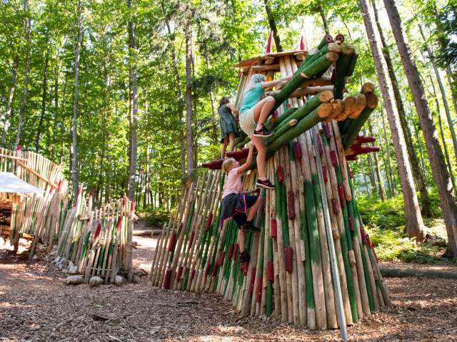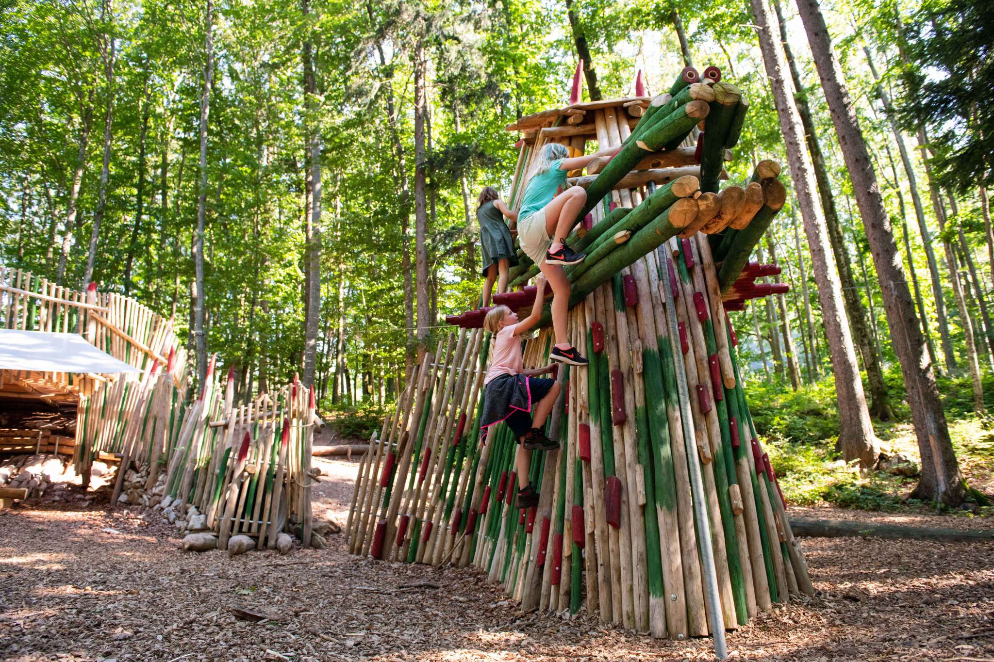 Erlebe Spiel und Spass auf dem Outdoorspielplatz Kerenzerberg in Filzbach: Klettern, Rutschen, Bouldern, Kriechen, Balancieren und Grillieren auf der Schweizerfamilie-Feuerstelle.