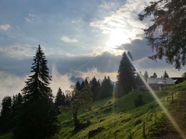 Im Sommer zu Fuss über Blumenwiesen zur Alp hochsteigen, die frische Bergluft in den Haaren. Nach rund 30 Minuten wird man von den Alpschweinen begrüsst und hat bereits die Alphütte erreicht. Serviert werden neben den Alpkäseprodukten verschiedene warme Gerichte und Plättli. Anreise Mit der Kerenzerbergbahn ab Filzbach bis Habergschwänd; anschliessend 30 Min. Wanderung auf dem Schabziger Höhenweg Richtung Nüenalp/Mullern.