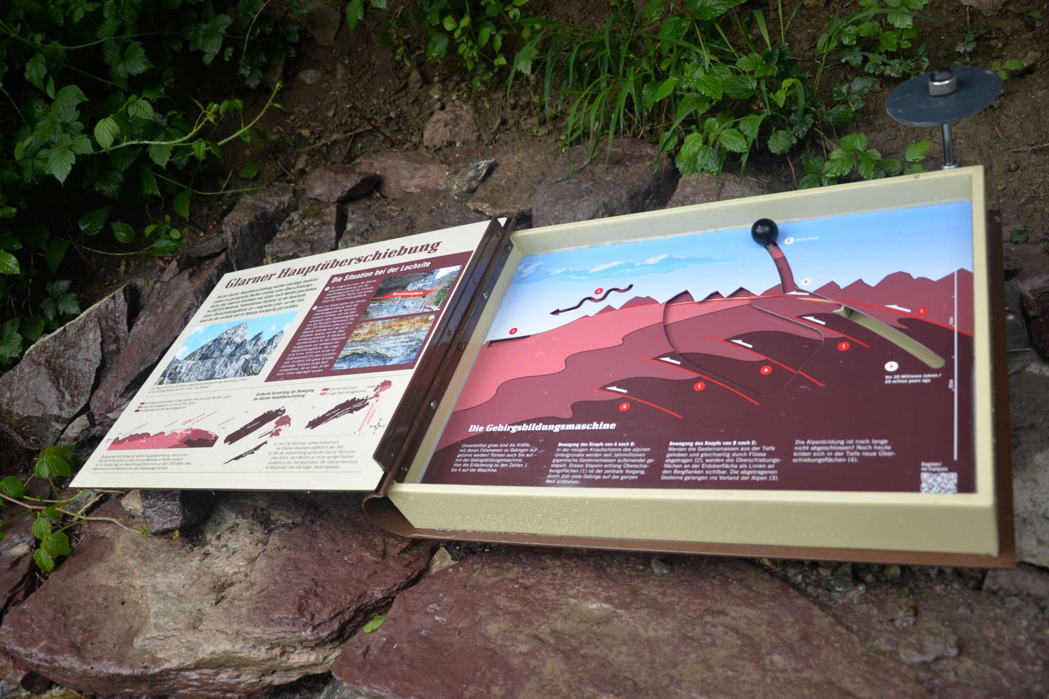 An der Sernftalstrasse in der Lochsite befindet sich eine Stelle, an der die sogenannten Glarner Hauptüberschiebung, d.h. die Überschiebung der neuen Gesteine (Schiefer) mit alten Gesteinen (Verrucano) während der Entstehung der Alpen besonders eindrücklich sichtbar ist.