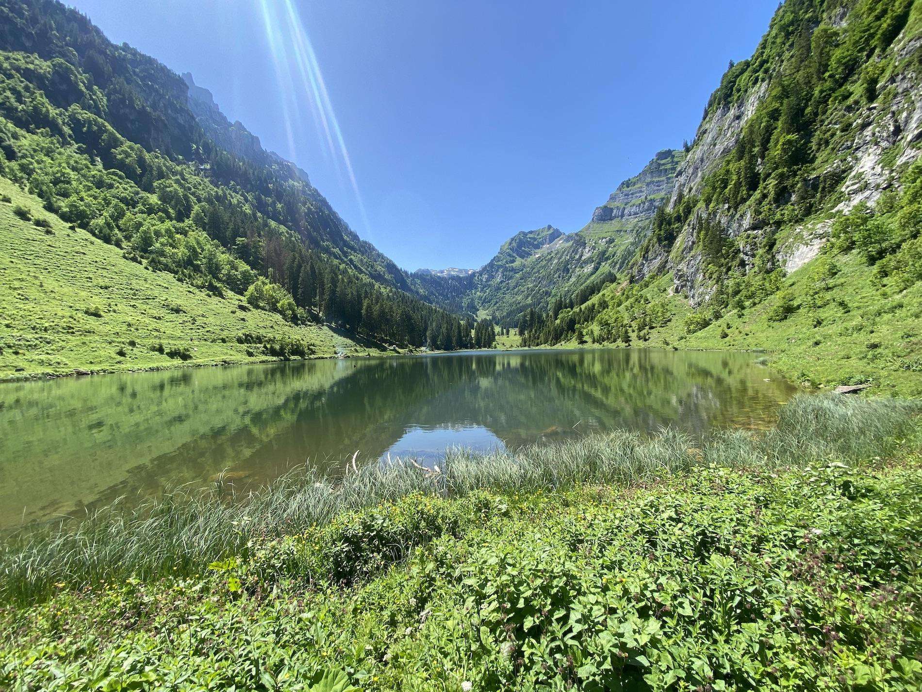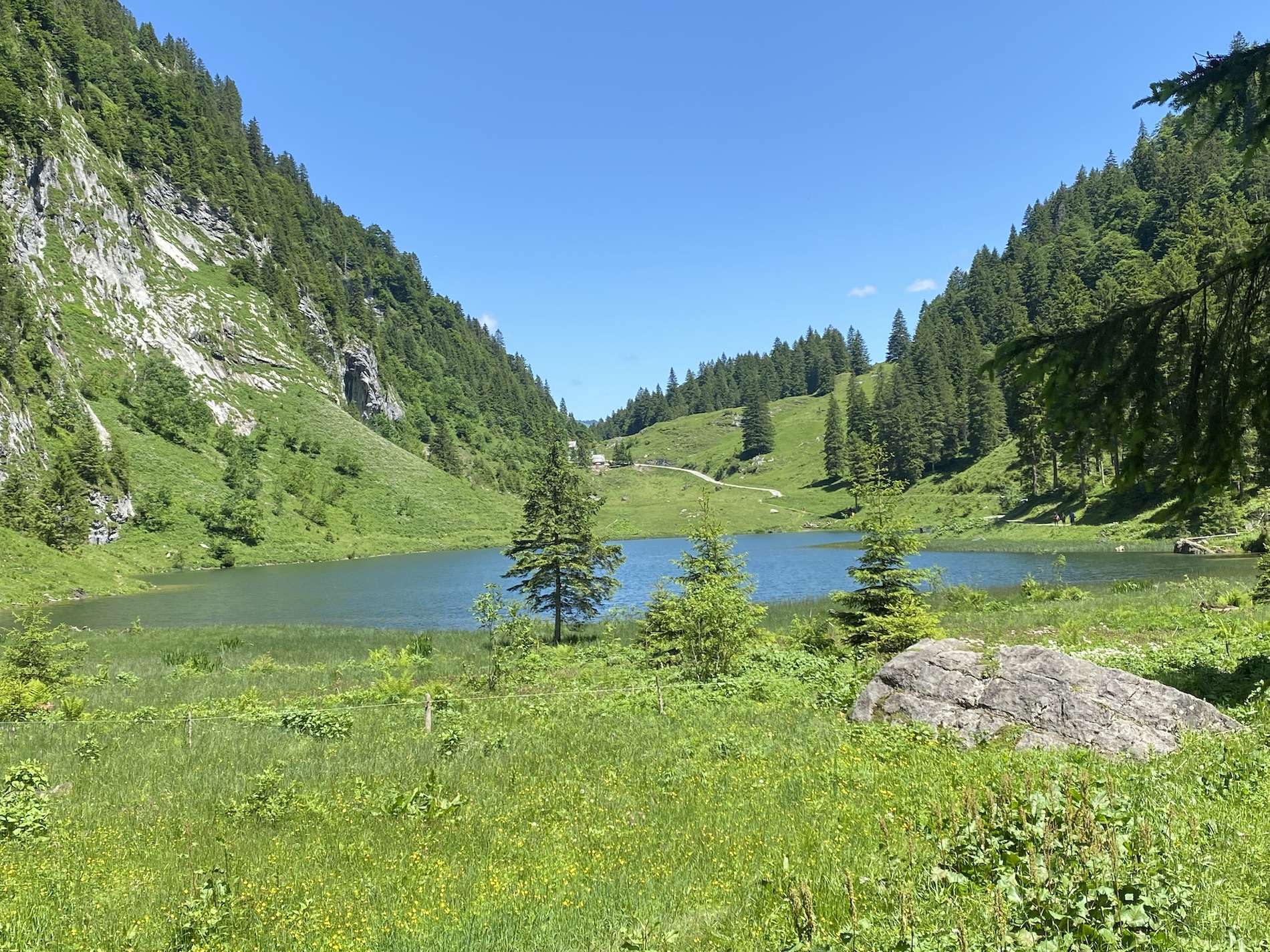Einkehren und die wunderschöne Aussicht auf den Talalpsee geniessen.