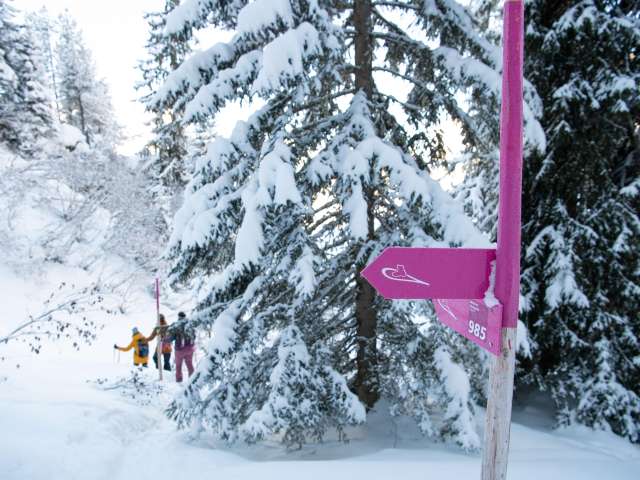 Den Winter auf Schneeschuhen erleben, im ältesten Wildschutzgebiet Europas, dem Freiberg Kärpf.