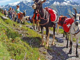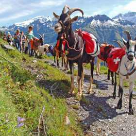 • Wanderung mit den Packziegen zum Bahnhof Schwanden