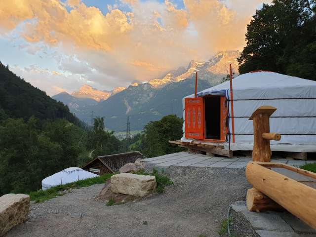 Inmitten der rauen und vielseitigen Schönheit der Glarner Alpen betreibt Werner Bleisch seinen Packziegenbetrieb. Dieser markiert den Ausgangsort der zweitägigen Tour, die uns in eine beeindruckende Bergwelt weg vom Alltag entführt. Im Jurtencamp, wo die Packziegen zu Hause sind, startet das Erlebnis. Die grossgewachsenen Ziegenböcke warten dort bereits neugierig aufs Kennenlernen. Für die anstehende Wanderung sind sie als gesellige Begleiter mit dabei und helfen mit ihren Packtaschen sogar beim Tragen. Auf geht die Wanderung zur Glarner Lochsite, die man auf einer Tour des UNESCO-Weltnaturerbes Tektonikarena Sardona auf keinen Fall verpassen darf. Dort ist nämlich die Glarner Hauptüberschiebung, die man sonst in den Tschingelhörnern, beim Segnespass oder der Kärpfbrücke nur aus der Ferne betrachten kann, zum Greifen nah. Nach dem hautnahen Einblick in diese geschichtsträchtigen geologischen Besonderheiten führen uns die Packziegen wieder zurück ins Camp, wo wir ein über dem Feuer gekochtes Abendessen geniessen dürfen, bevor wir dann die Ruhe in den Stroh- und Jurtenbetten auf uns wirken lassen können.