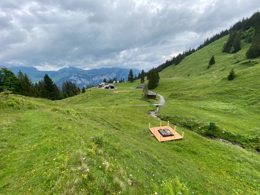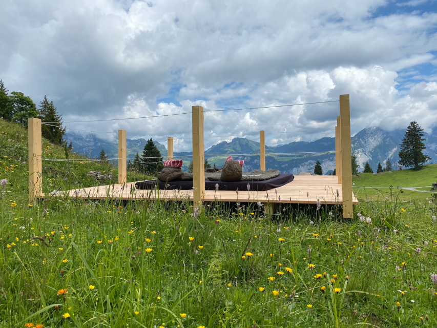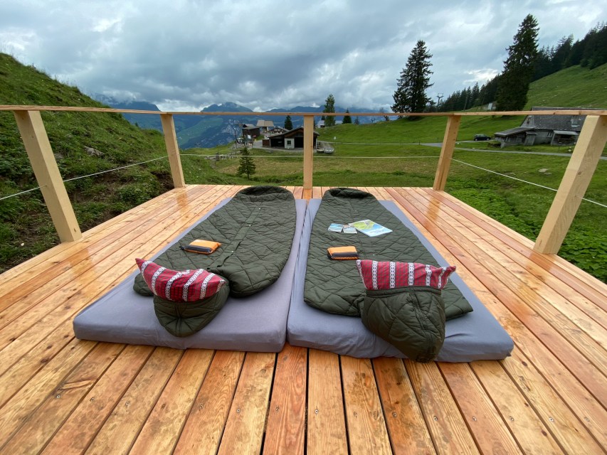 Preis inkl. Frühstück CHF 55.–/Erwachsene, CHF 45.-/Kinder, Schlafsäcke können für CHF 10.- dazu gemietet werden. - Im Sommer im Million Stars Hotel auf Lerchenholzplattformen